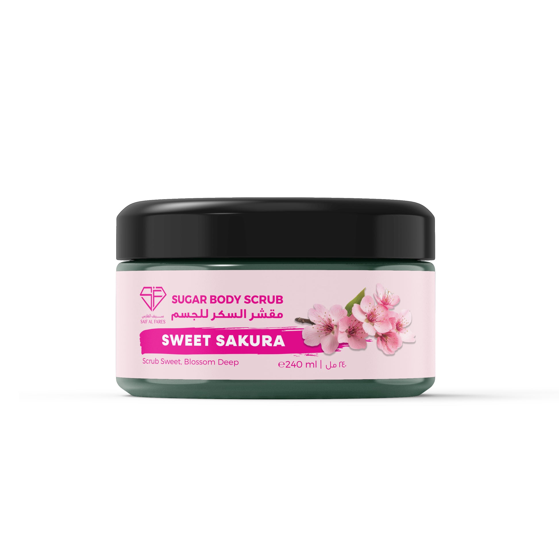Revitalize your skincare routine with the SUGAR BODY SCRUB SWEET SAKURA 240ml an invigorating exfoliant crafted to brighten and refresh your skin.